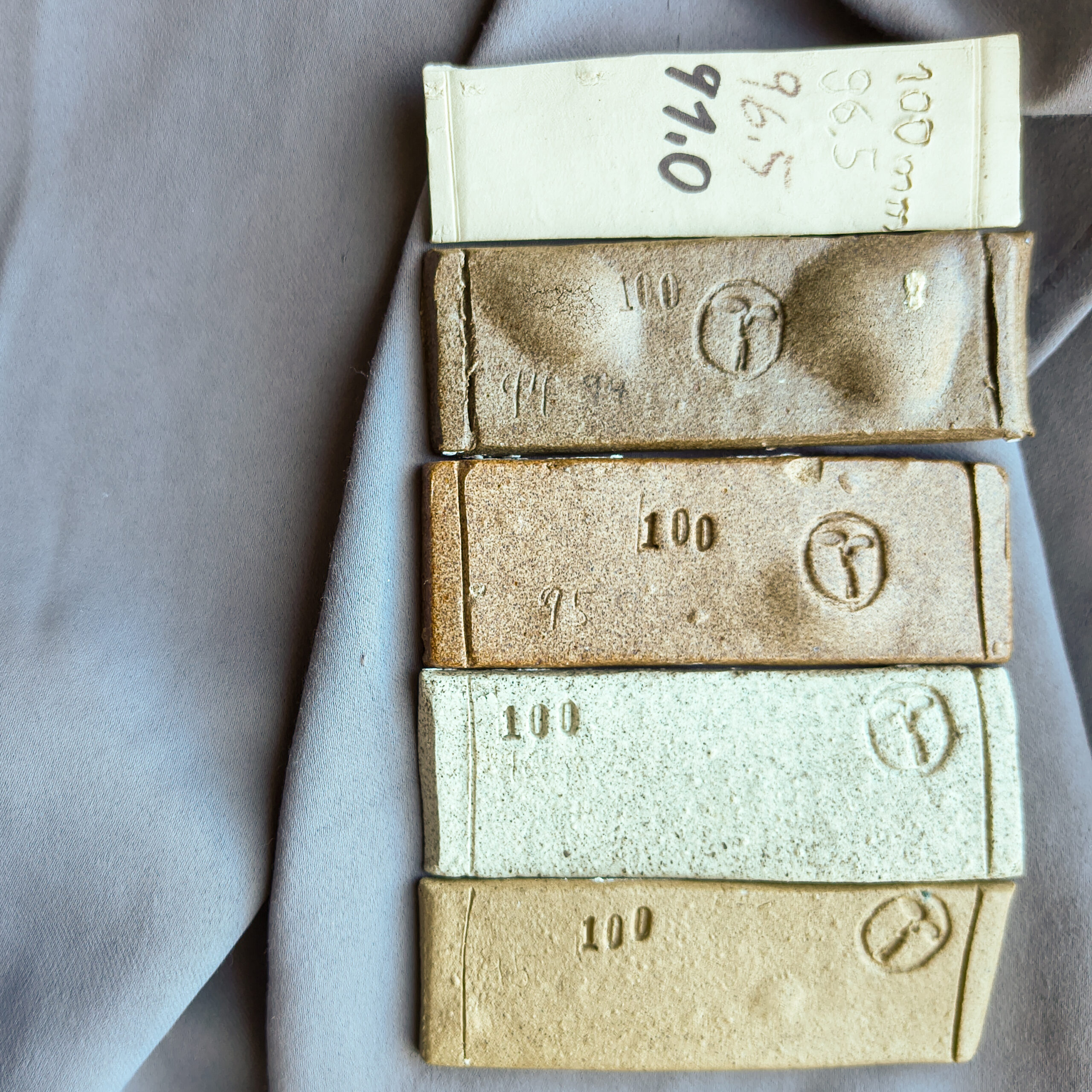 Der Probenkörper kann mir nach dem letzten Brand etwas über die Schwindung sagen, ich kann die Farbe und Textur sehen und die Wasseraufnahme testen.